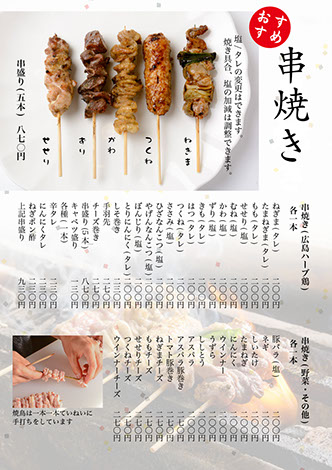 こちらは焼鳥屋さんが、以前使用していたメニューです。お店の方がワープロソフトで作って、自分でスマホで撮った写真を貼付けています。